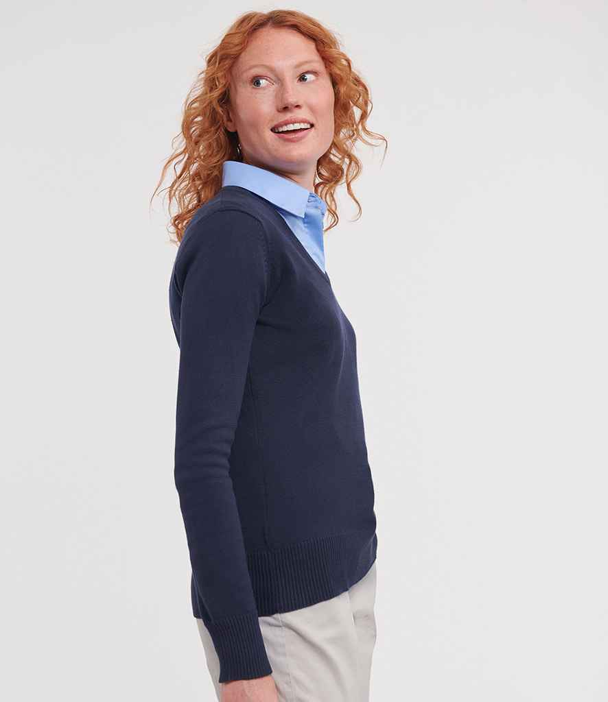 Russell Athletic Collection Ladies Cotton Acrylic V Neck Sweater